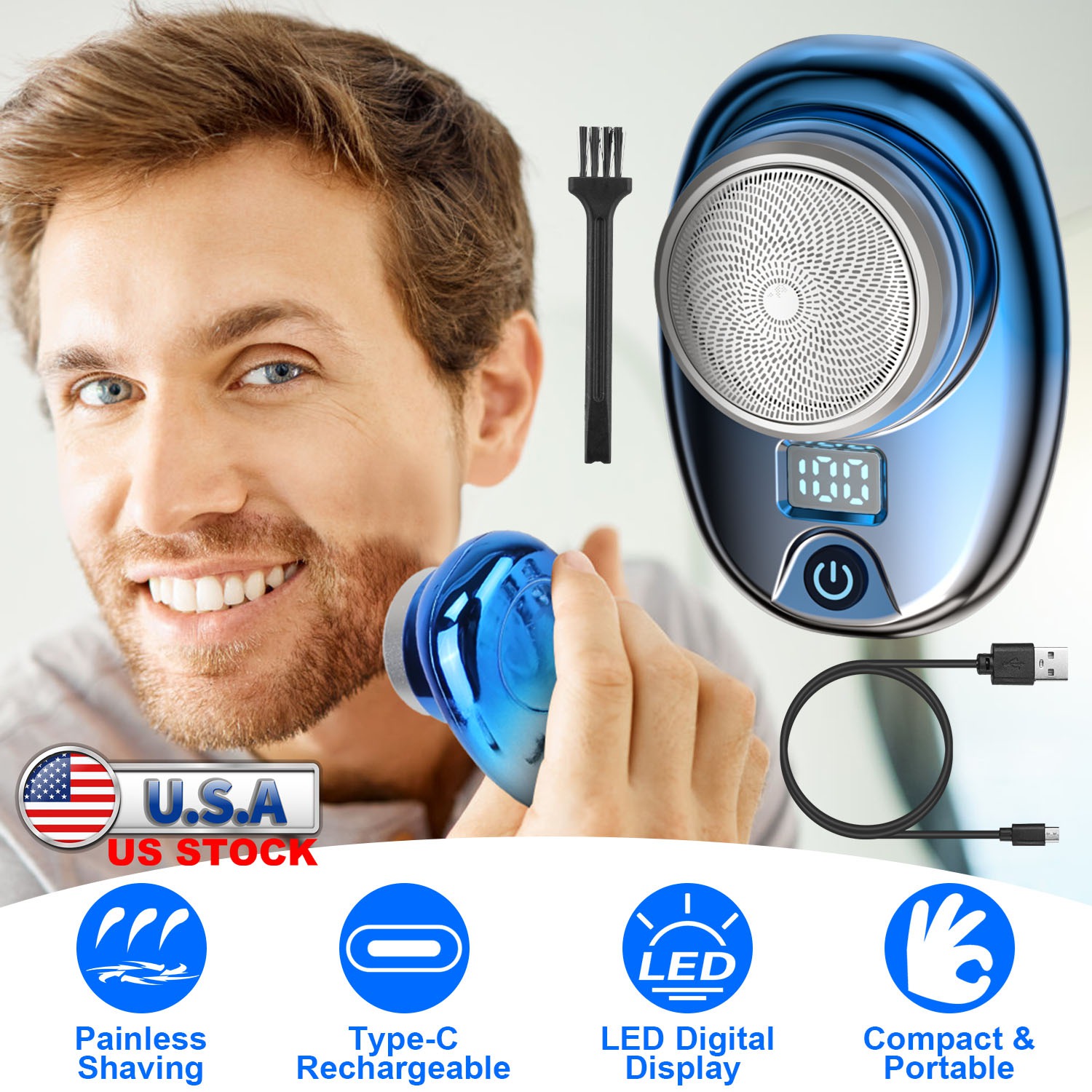 Our electric men's shaver features 6 sharp blades under an ultra-thin steel net for precise and painless shaving. Powerful and low power-consumption motor ensures quiet operation. This compact and portable shaver weighs only 0.17lbs and measures 2.95x2.16x1.57in in size, making it easy to store in your pocket or bag for home, travel, office, or car use. Type-C rechargeable battery is convenient to recharge via laptop, power bank, adapter and more. Available in 3 different colors, this portable electric men shaver is an ideal gift to show your love and concern for your father or lover in special days.