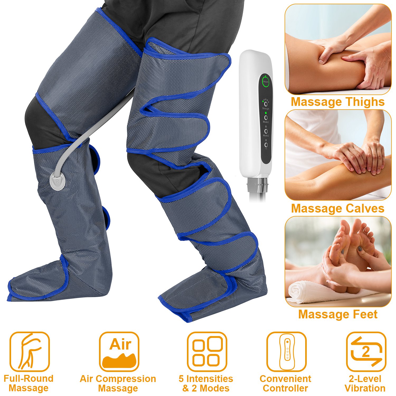 Home > Leg Massager Air Compression Calf Feet Thigh Foot Massage Wraps Muscle Pain Relief Blood Circulation w/ 2 Massage Modes 5 Intensities 2 Vibration Leve