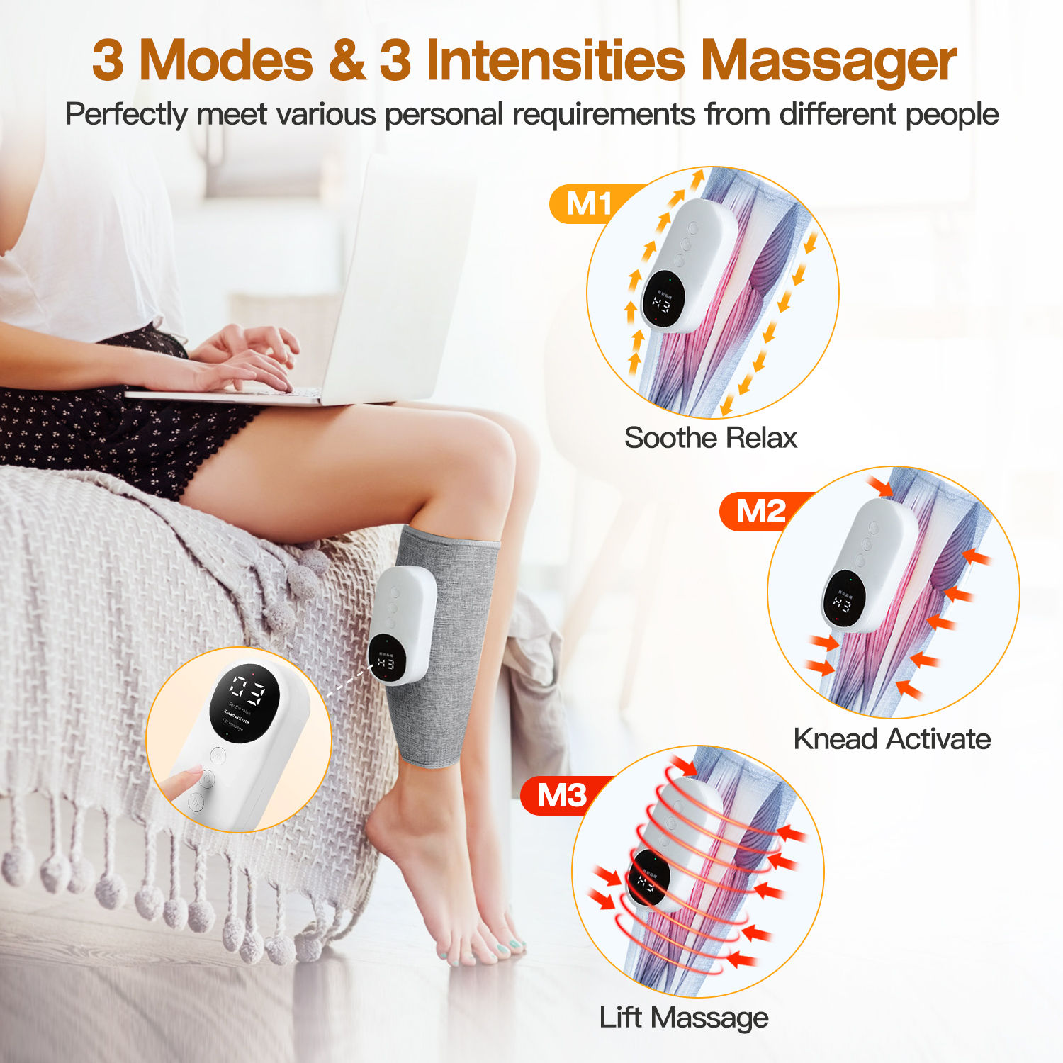 Home > Electric Leg Calf Arm Massager Portable Cordless Rechargeable Air Leg Compression Massage Adjustable Wrap with 3 Modes Intensities Heating Function Pa