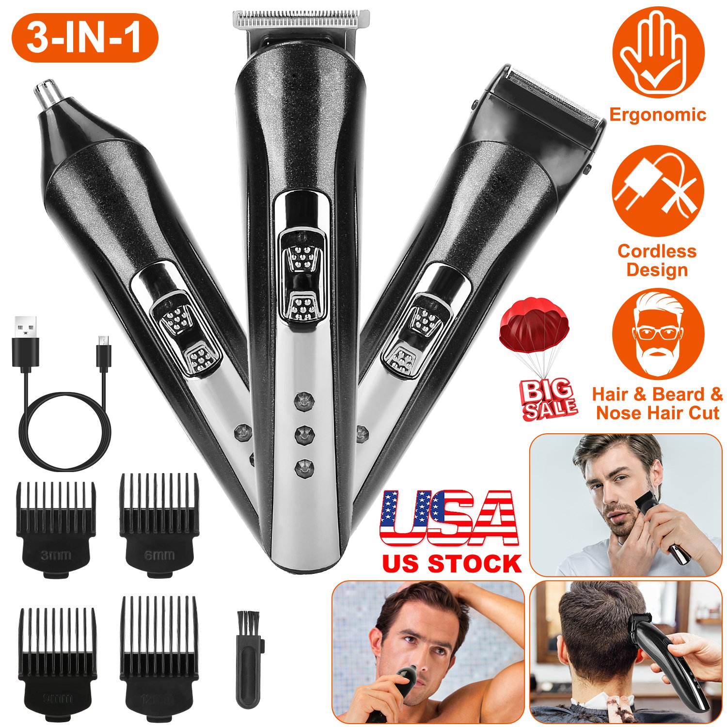 3 in 1 Rechargeable Hair Clipper Cordless Hair Trimmer Shaver Electric Razor Beard Trimmer Nose Hair Trimmer